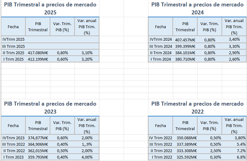 El producto interior bruto de España en el segundo trimestre de 2025 ha crecido un 0,8% respecto al trimestre anterior. Esta tasa es 2 décimas mayor que la del primer trimestre de 2025, que fue del 0,6%.